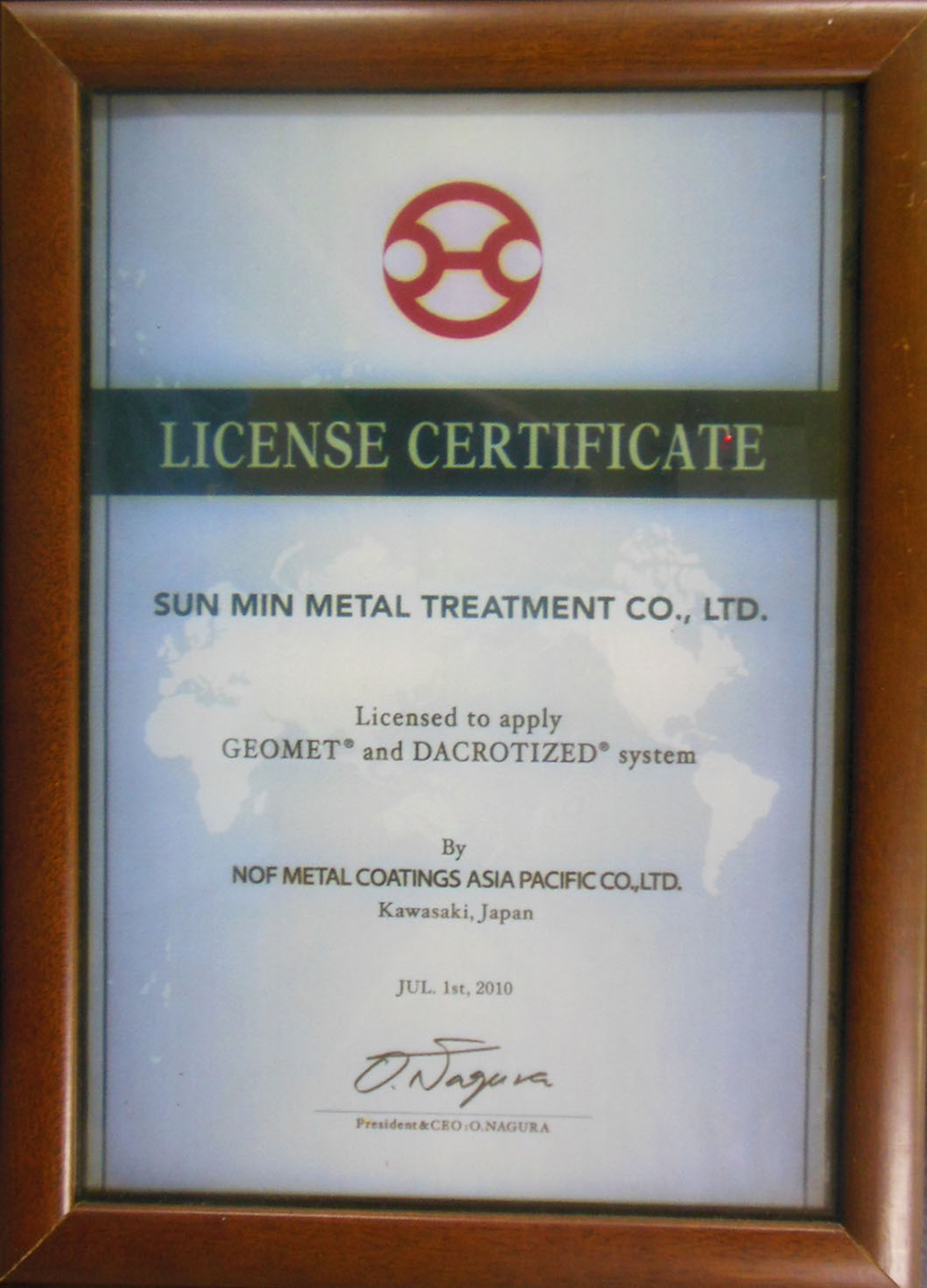 • 久美特授權證書